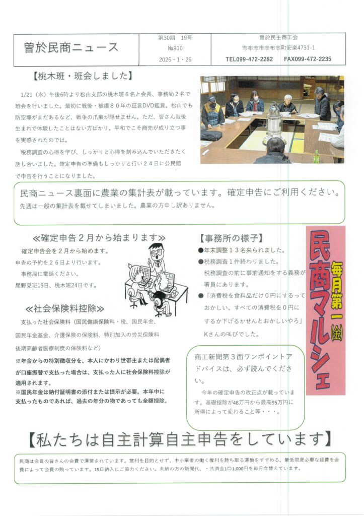 HOME > 民商ニュース > 民商ニュース 曽於民商ニュース R8年1月26日号 2026年1月22日 Post Share Hatena Pinterest LINE コメント URLコピー -民商ニュース