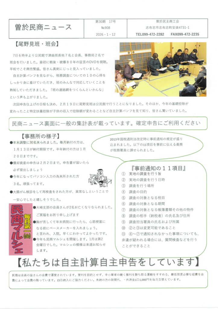 HOME > 民商ニュース > 民商ニュース 曽於民商ニュース R8年1月12日号 2026年1月9日 Post Share Hatena Pinterest LINE コメント URLコピー -民商ニュース